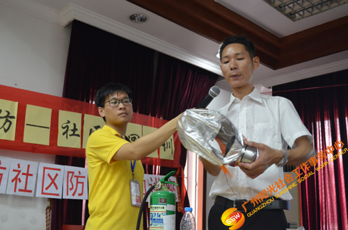 消防安全一直是人民街辖区的重点工作。房屋密集老旧、住改仓、商住混合的情况致使街区火灾隐患大。一旦发生火灾,且消防车无法进入,居民自救就显得尤为重要。为了更好地提升居民的消防意识,普及消防知识,人民街大新家庭综合服务中心联合人民街综治办、防火办、各居委会举行巡回消防培训演习活动,2015年8月27日下午,社区巡回消防培训的第三站在状元坊社区开展。