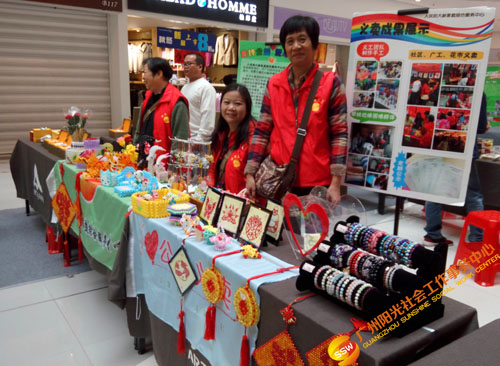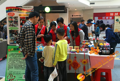 广州阳光社会工作事务中心主动链接社会活动资源,报名参加集艺社主办的粤秀公益艺术文化节。2016年12月3-4日,活动如期开展,人民街大新家庭综合服务中心手工专项义工队暨义卖管理团队(以下简称手工队),作为机构代表之一,来到北京路粤海仰忠汇开展“公益市集”义卖活动。