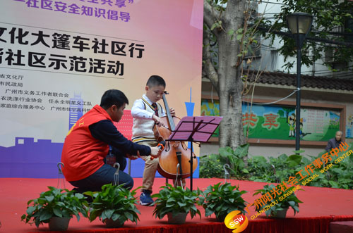 剧场节目丰富多彩,有专业粤剧团演员唱粤曲;有热心的义工队伍表演快板、舞剑、合唱,提醒您注意出行安全;有可爱的小义工合唱、大提琴演奏;有资深的社区义工骨干通过小品剧现场教您防电信诈骗……