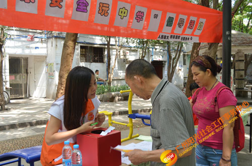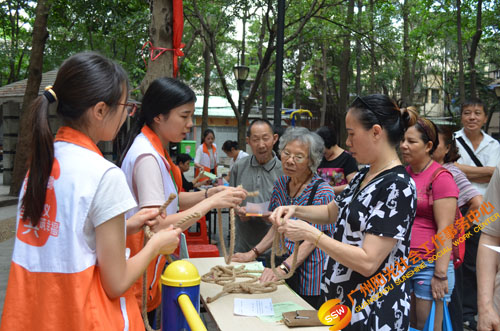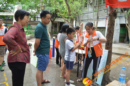 人民街大新家庭综合服务中心义工特色部于6月8日下午在大德中科普文化广场组织了一场“居民安全玩中学”安全倡导活动,让居民们从摊位游戏中学习高空逃生绳结的知识,提高社区居民居家安全逃生意识。