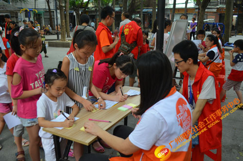 2017年8月19日下午,伴着明媚的阳光,人民街大德中科普文化广场迎来了欢乐热闹的大型社区参与倡导活动,现场活跃着13名社工、26名义演义工、14名协助义工的身影。