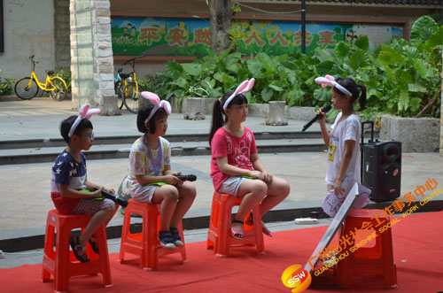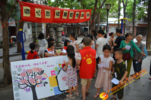 知识宣传互动游戏环节,设有长者居家安全知识宣传、微心愿宣传和组词大挑战、手工品义卖、青少年暑期活动成果展、义工宣传视频播放等摊位。