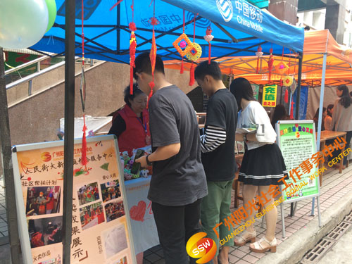 18日早上,义工早早就来到活动地点,迅速开始摊位布置工作,图一为义工在布置摊位现场。
