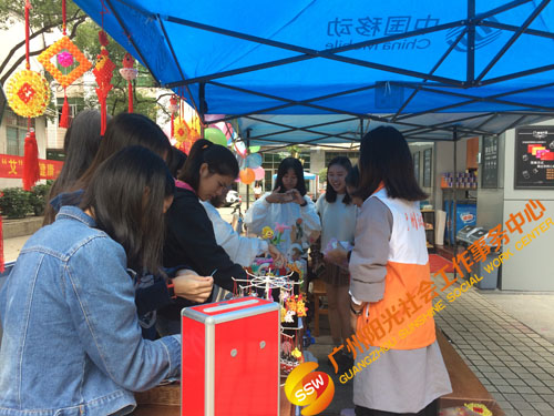 2017年11月18-19日,在冷空气的来袭之际,人民街大新家庭综合服务中心手工专项义工队暨义卖管理团队(以下简称手工队)在广东工业大学东风校区女生节淘宝街活动中掀起了一股爱心义卖的暖流。