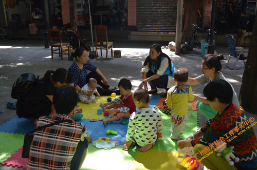 人民街大新辖区是一个老城区,社区内安全开阔的活动场地和设施较少,社工通过跟一些幼儿的照顾者交谈得知,她们很希望可以有一个既安全小朋友又喜欢的环境,让自己的孩子可以跟其他的小朋友一起玩耍,而自己也可以有更多的机会跟社区内同龄小朋友的妈妈相互交流育儿心得。