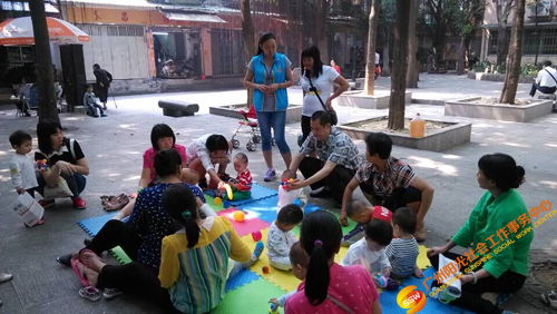 因此人民街大新家庭综合服务中心2015年10月15日至11月26日在大德中广场开展了以“宝贝健康成长”为主题的家长支持小组,主要是针对2岁以下幼儿的亲子家庭,旨在通过提供一个安全的活动场地,让幼儿可以在一起玩耍,家长们可以相互交流。