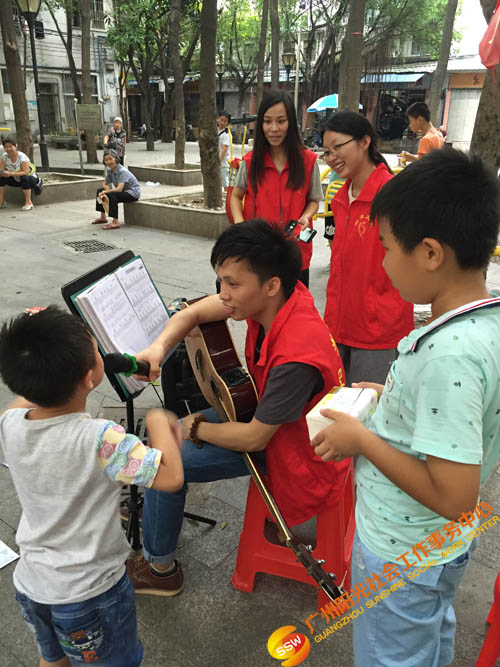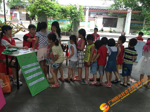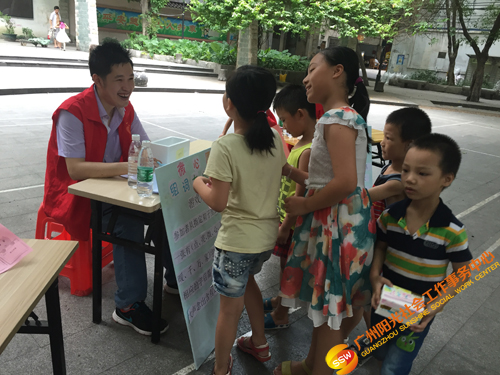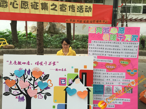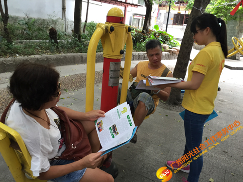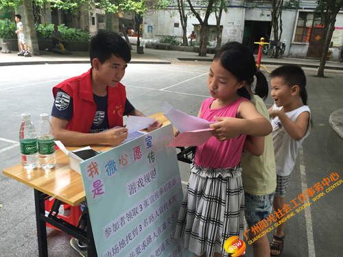 2016年6月25日14时,广州,气温35摄氏度。虽然我们遇上炎炎夏日,却阻挡不了我们传递微爱的行动。下午14时30分,人民街大新家庭综合服务中心家庭部在越秀区大德中广场开展了 “点亮微心愿,情暖千万家”微心愿征集之宣传活动,活动主要通过社工、义工、游戏挑战者向社区居民一对一宣传微心愿征集活动,并呼吁社区居民能够尽自己的能力去帮助困难家庭完成小小的微心愿,共同传递微爱。