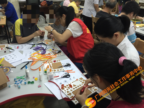 2016年6月24日下午14:00-15:30,人民街大新家庭综合服务中心家庭部的社工在大新工疗站顺利开展了主题为“纸上谈艺,卷出我们色彩缤纷的世界”残障人士手工小组。本小组的服务对象为残障人士,以卷纸画作为索引,最后以每个小组成员能卷出自己色彩缤纷的世界,都能有属于自己的成品展作为最终目标,希望提升他们动手能力的同时提高社会对他们认同感。