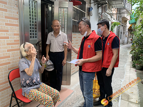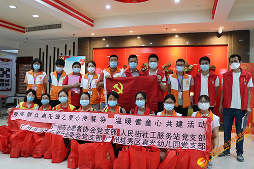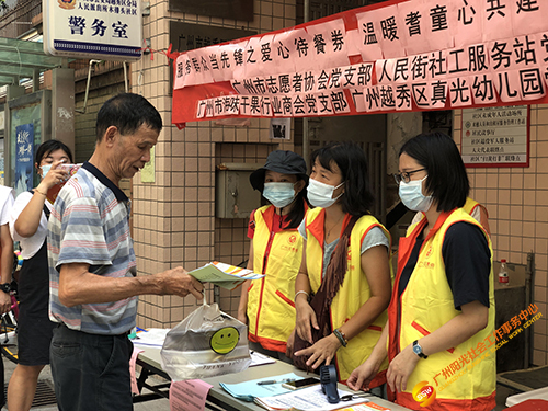 2020年7月15日和16日上午,为积极响应建党99周年,发挥人民街党组织战斗堡垒作用,加强各党组织之间的合作交流以及社会责任感,发挥在职在职党员的先锋模范作用,人民街社工服务站党支部与广州越秀区真光幼儿园党支部、广州市海味干果行业商会党支部开展“服务群众当先锋”之“爱心待餐券、温暖耆童心”爱心待餐共建活动,共有33人次党员和社工参与,其中在职党员20人次、党员社工4人次、入党积极分子1人次、社工8人次,通过“社区定点、上门派餐、上门派券”等形式为社区81名60岁以上空巢、孤寡长者、10名困境儿童派发爱心盒饭,共有556份。另外,广州市海味干果行业商会党支部向10余名高龄长者送上慰问金共计2800元。
