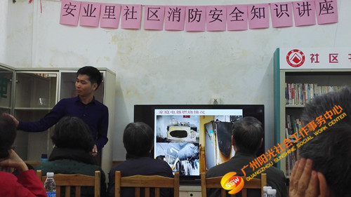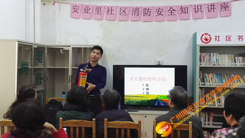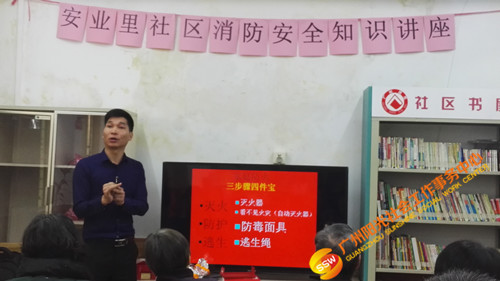 2017年12月12日,人民街家庭综合服务中心联合安业里居委会,为了社区居民们更深入地了解消防安全知识,树立起消防意识。中心邀请广州消安防火宣传中心专业教官来给安业里的社区居民开展了一场社区消防安全知识讲座。