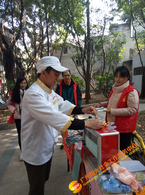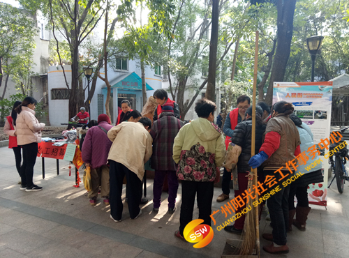 人民街家庭综合服务中心在社区中开展“爱心慈善义卖活动”,目的是宣传社区公益服务理念,营造社区互相关怀的氛围。在活动现场,义工积极地邀请居民参与到活动中来,与居民介绍义卖费用的使用途径,让居民对活动有更深层次的了解。