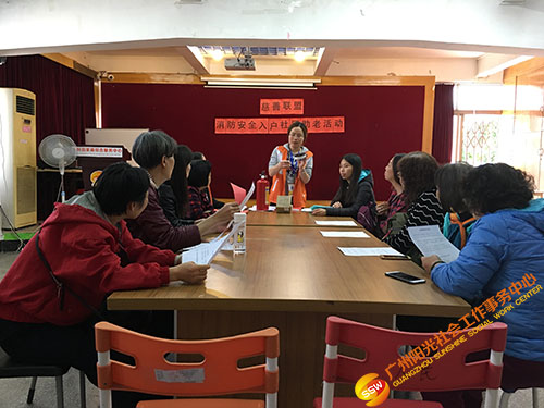 出发探访前,社工特意组织参与义工们进行岗前培训,介绍本次活动的服务目的,特别是说明灭火器及烟雾感应器的使用及安装步骤,让义工们能够更清晰的了解自己的工作,为长者们提供更好地服务。