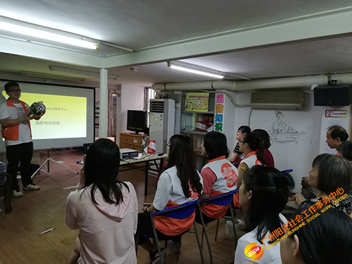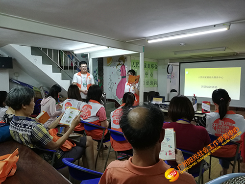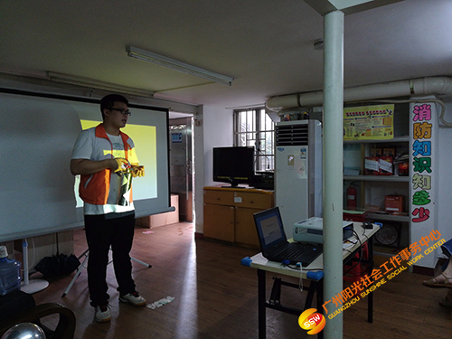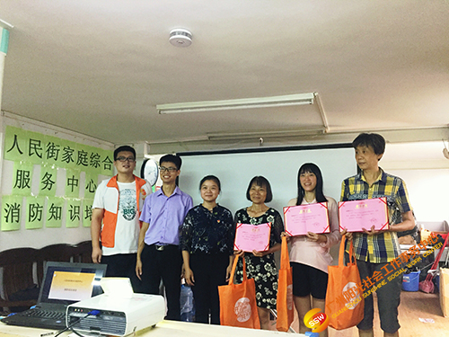 两点整,活动正式开始。首先,是人民街家庭综合服务中心消防巡逻队优秀消防队员颁奖仪式,青兰里居委会谭主任和广州阳光社会工作事务中心陈副总干事为2017-2018年度在消防巡逻活动中表现积极,认真负责的优秀消防巡逻队队员颁上“消防安全标兵”荣誉证书,并给予了口头表扬。