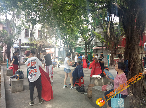 2018年7月28日,人民街家庭综合服务中心在辖区内青兰里小公园开展“便民服务日”活动,活动链接了爱尔眼科医院、新时代美发资源,为社区居民提供义诊、义剪服务。