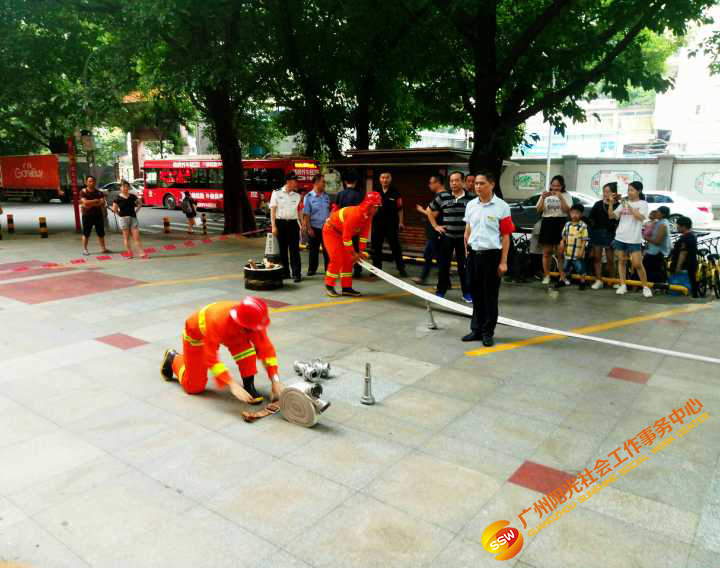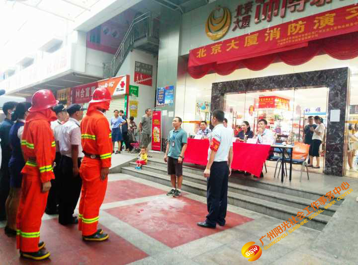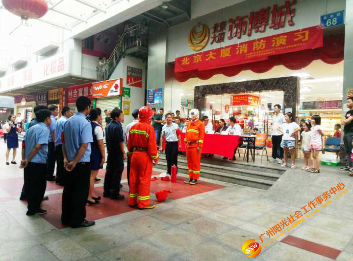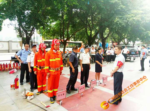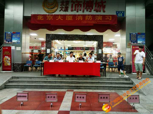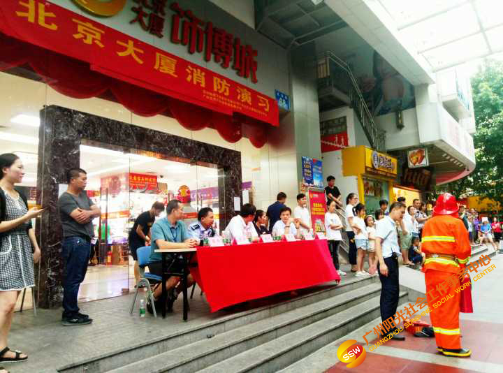 为进一步强化员工和商户的消防安全意识,提高火灾防控能力和突发事件应变能力,学会正确使用灭火器和各类消防器材、设备、设施等。人民街家庭综合服务中心联合北京大厦服务中心和共享管理有限公司,于2018年8月17日下午16:00-17:30在北京大厦前广场组织开展了2018年度实战消防演习。本次演练特邀人民街派出所消防组、人民街太平通津居委会、保利物业管理经理、北京大厦业主及商户进行了现场观摩及指导。