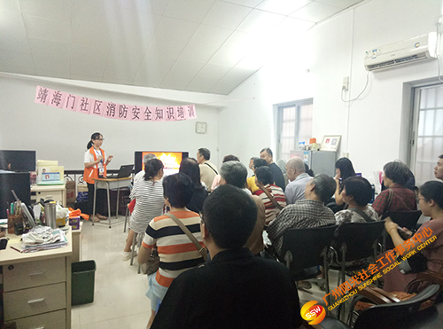 为增强居民消防安全意识,提升居民消防知识水平。2018年8月30日下午15点至16点,人民街家庭综合服务中心在靖海门居委会二楼开展社区消防安全知识培训,为社区居民讲解常见的消防安全知识。