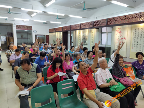 2019年6月11日,人民街社工站与太平通津居委合作开展党员活动,为太平通津社区党员讲解预防登革热的相关知识,同时派发中心宣传资料包括中心折页、活动预告、消防宣传折页等,宣传中心服务,提高社工站的知名度。
