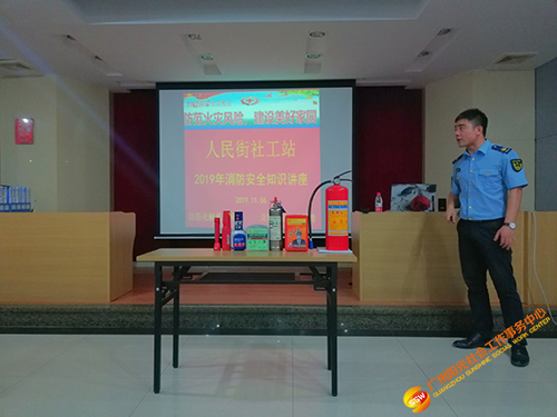 人民街社工服务站于2019年11月6日开展社工消防知识培训,邀请专业教官讲解消防知识,包括公共场所的逃生、自救方法、消防器材的使用方法等内容,让全体社工全面做好日常对外开放场地的安全保障预防工作,以此确保服务对象的安全权。本次消防培训,社工认真听讲,积极提问,掌握了消防器材的使用方法等,消防安全意识得到提升。