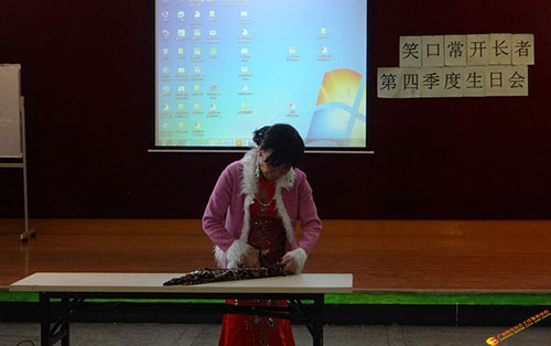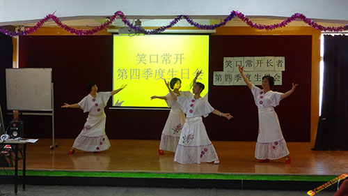 活动开始,舞蹈小组的组员首先倾情演出了《青稞酒》与《爱在天地间》两支舞蹈。随后就是精彩的有奖问答环节和义工猫步show,还有剑术表演,英姿飒爽,台下的长者不禁拍掌叫好。内容非富多彩,让今日的寿星公大饱眼福,纷纷表示过了一个非常开心的生日!