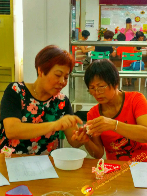 2016年8月17日早上,人民街社工在家综二楼开展六期的串珠小组圆满结束。该小组旨在发挥长者义教资源,将手工技巧传授给长者群体,促进其互动,共同制作更多的手工串珠作品用于义卖,回馈社区。