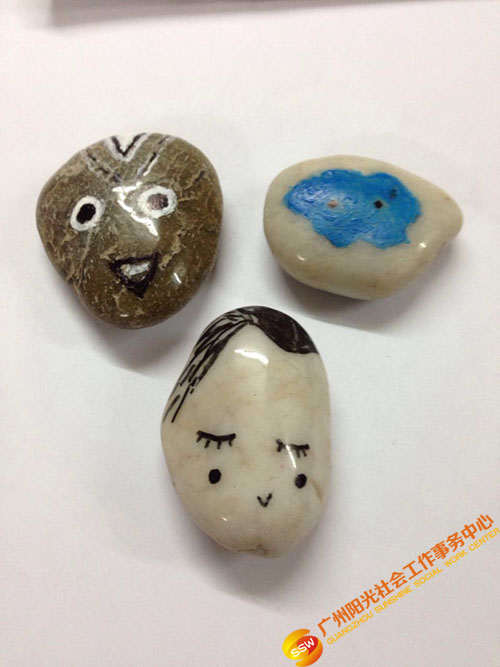 “我见过我女儿在石头上画画,但是自己没试过,试过才发现,原来这么么有难度的哇,比在纸上画难度大多了哇,我还是需要练多些才行”。