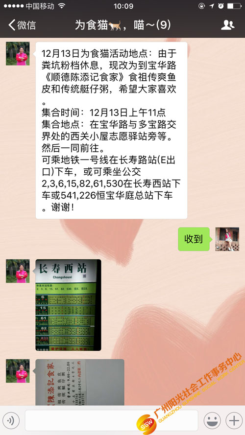 小组是由9名低龄长者组成的,为了更能激发组员的组织能力、策划能力,社工安排了每两位组员为一组,每组组员负责一节小组的任务,任务包括:觅食地点,了解该店的情况,在群里发布交通指引,集中时间等;在实际操作中,组员安排非常到位,尽责的了解其他组员的需求,提前到达目的地踩点,发布交通指引的同时并将图片附上,让其它组员一目了然,清晰的到达目的地,在此,社工深刻的感受到,组员的能力是无限大。