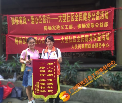 2017年6月29日上午,人民家综与广州棒棒家政服务有限公司、石牌家综、素社家综合作开展棒棒家政·爱心公益行——大型社区全民健身公益宣传活动。此次活动旨在倡导全民健身的理念,增加社区长者的互动,丰富他们的生活。人民街21位长者参加了本次活动,现场出席的长者约有100人。