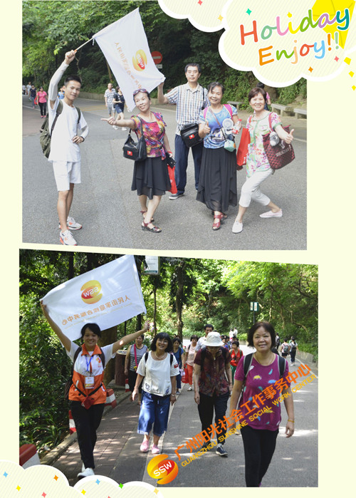 在白云山南门进行大合照后,长者们便兴奋地展开白云山徒步登山旅程。长者们三五成群,一边走一边欣赏白云山绿树成荫的景色。许多长者都懂得登山的要诀——保持平稳的行走速度和呼吸。不一会儿,大家都到达了能仁寺。