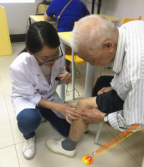 南方医科大学志愿者为长者进行穴位按摩指导
