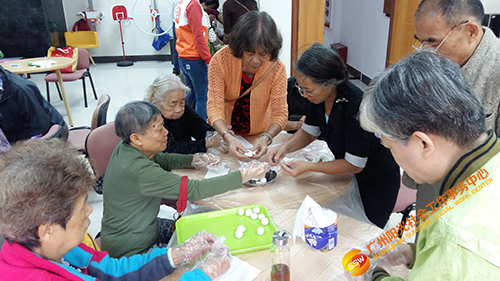 长者一起包汤圆