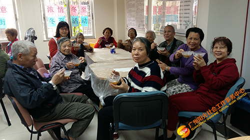 长者一起品尝充满冬至祝福的汤圆