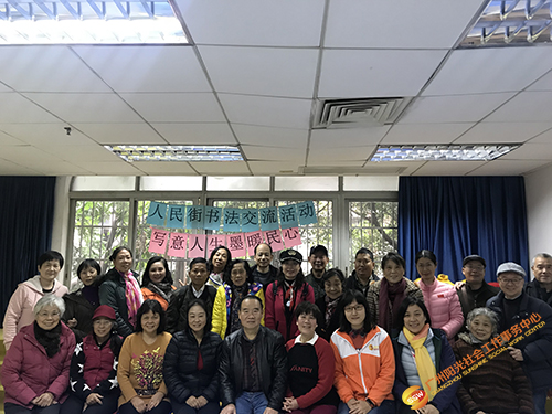 2019年1月4日下午,人民街书法队及其他社区书法队成员在人民街社工站举行书法交流活动。