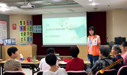 社工和长者分享总结长者学堂的开展情况和成效