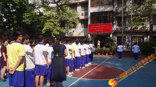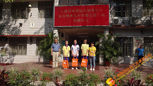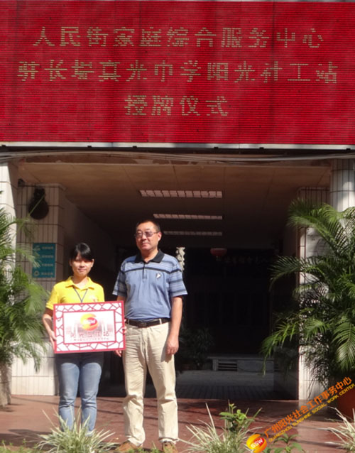今年为了更方便有效的开展青少年服务,带动青年参与社区建设,人民街家庭综合服务中心与长堤真光中学商定在学校建立阳光社工站。阳光社工站于2015年10月19日9:30在长堤真光中学篮球场举行了授牌仪式。