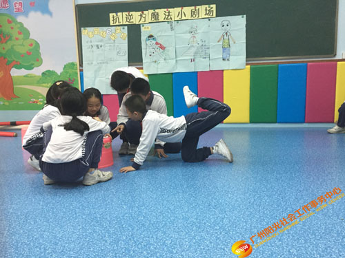 “抗逆力魔法小剧场小组”开工了!这是一个神奇的小组,讲述一个抗逆力小英雄的故事。以西西这个同龄人为榜样,教授大家采用什么办法可以将生活中不顺心的事变得顺心些。此小组由人民街家庭综合服务中心青少年部社工联合旧部前小学开展,活动场地设在旧部前小学心理咨询室,时间从2016年4月至6月,共12节,目前小组进行到第9节。