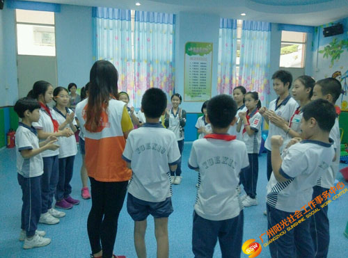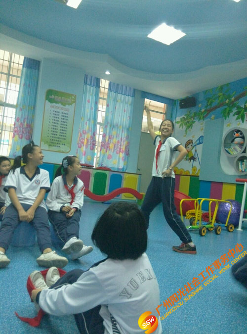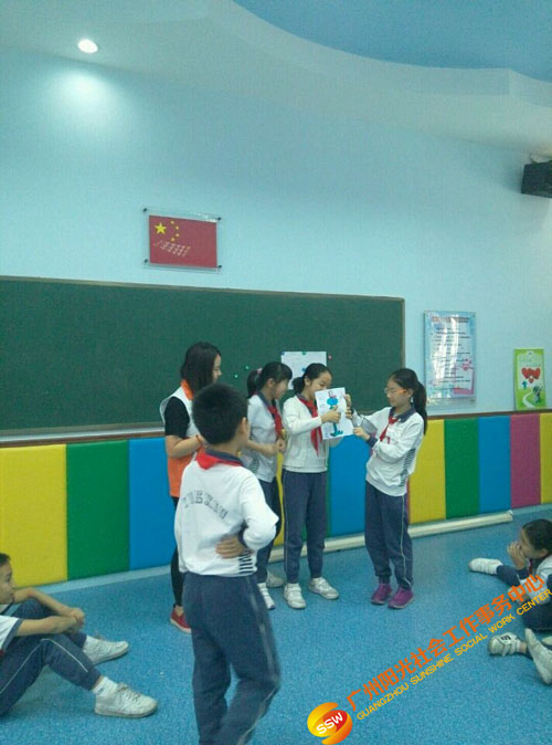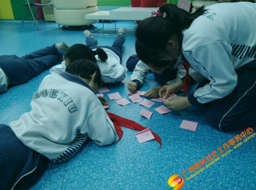 2016年9月至12月人民街家庭综合服务中心青少部社工在旧部前小学开展“快乐满分”情绪小管家培育小组。本次小组拟通过带领青少年体验情景演绎、历奇游戏,促进青少年认识和了解情绪,懂得观察和记录自己的情绪状态,学会正面表达情绪的心理语言和表达模式。