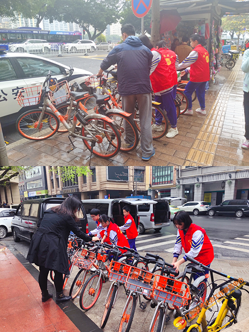 针对社区内乱摆乱放共享单车影响交通和市容问题,广州市真光学校的10名青少年团员义工利用自己中午休息的时间,进入学校附近社区-兴贤里社区内对乱摆放以及倒地的单车进行整理并且摆放整齐,使整个社区的面貌焕然一新,更加规整和美好。