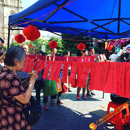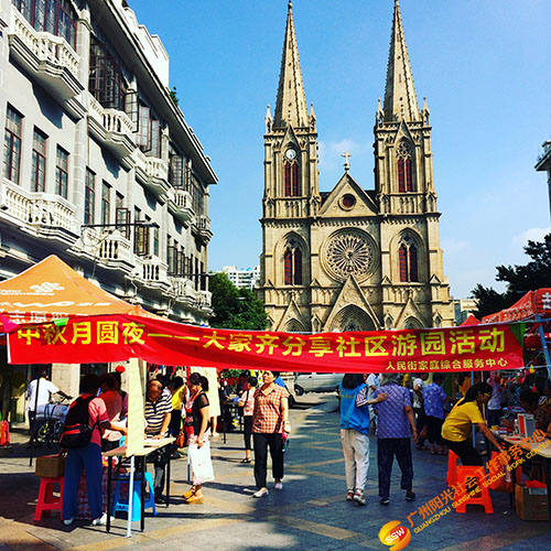 2015年9月25日上午人民街家庭综合服务中心在石室广场前开展了“中秋月圆——大家齐分享社区游园活动”。活动当天天公作美,万里晴空,布置的现场已经吸引了大群居民的围观,大家都迫不及待期待活动的开展。