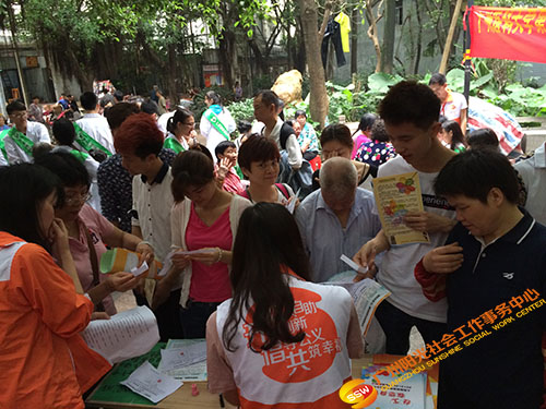 2016年4月16日9:30—11:00人民街家庭综合服务中心家庭部社工以及义工开展了“我爱我家”——爱护社区环境宣传活动。活动通过“绿色的家”、“大家来找茬”和“家——健康”的游戏摊位中学习和体验各种关于社区环境知识,如环保知识、消防知识和个人身体卫生知识等,提升参与者对爱护社区环境的意识,使社区家庭在社区中有意识地保护社区环境。活动中,社区居民踊跃此次参加环保知识问答、找出消防知识和义诊,社工在与居民的互动中解说如何爱护社区的环境,如社区环保知识和消防知识,派发保宣传单。