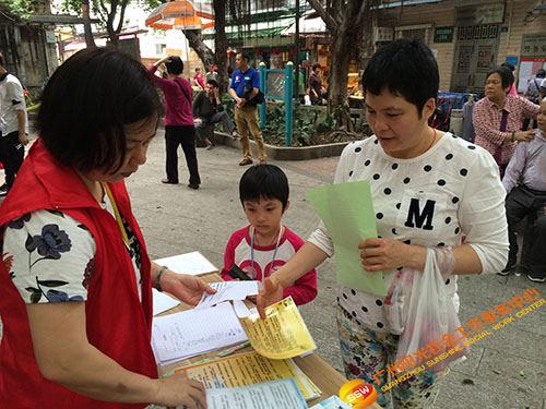 义工在向居民宣传环保知识