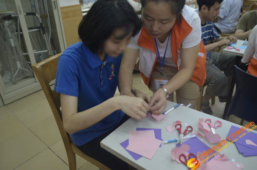 2016年6月17日早上,人民街家庭综合服务中心家庭部的社工与义工们前往康园工疗站开展“齐齐动手”手工制作小组。通过指导工疗站成员们学会制作一些小手工制品,锻炼他们的动手能力以及思维能力,令成员们在动手制作过程中提高自我的自信心与发掘他们的潜能,使他们在小组活动中得到成长。