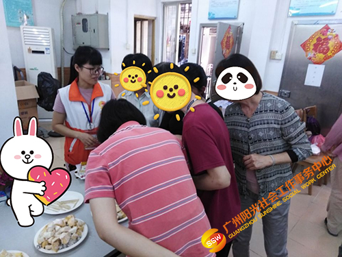 小组开展前社工了解到组员的自我照顾能力较弱,日常生活饮食主要由家人负责,根据此情况社工选取常见的食材进行常规的煮食方法教学,小组内容涉及煮鸡蛋、煮饭、煎鸡蛋、煮西红柿鸡蛋汤、煲番薯糖水和水果沙拉共开展了6节。小组开展时,组员积极参与到小组中来,成就感和喜悦感也比较高,而当节小组结束后组员还能回家进行实践。参加小组后,组员掌握了煮饭放水量、翻鸡蛋、刨皮、切块等实用的生活技巧,由此看出组员的自我照顾能力得到提升。